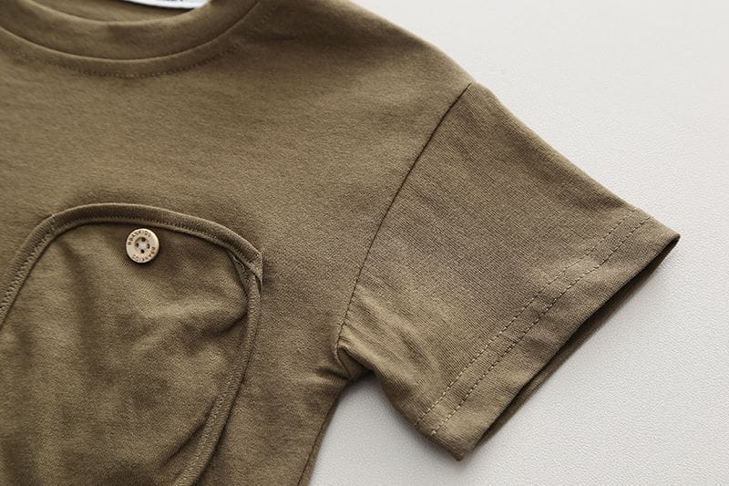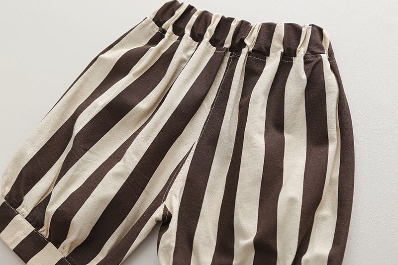 Dress your little one in comfort and effortless style with this 2pc Korean Style outfit. The set pairs a soft cotton t-shirt featuring a cute front pocket with striped, elastic-waist shorts — designed for easy movement, all-day comfort, and a modern look inspired by Korean kidswear trends.