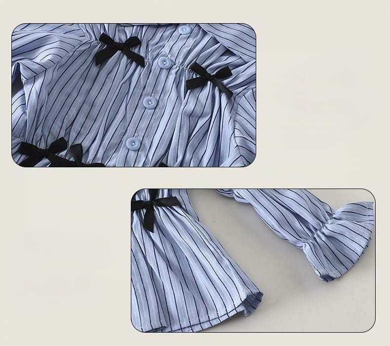 - 2-piece set: striped shirt with bow details + layered black skirt