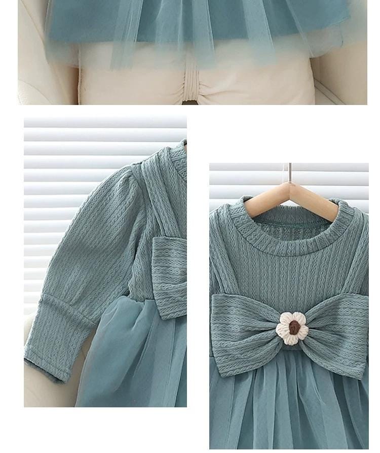 Charming, elegant, and picture-perfect — the Fiona Blue Princess Frock is designed to make your little girl shine. Featuring a cozy knitted bodice with long sleeves and a flowy net skirt, this frock blends comfort with fairytale style. The oversized bow at the waist, adorned with a delicate flower, adds the sweetest finishing touch.