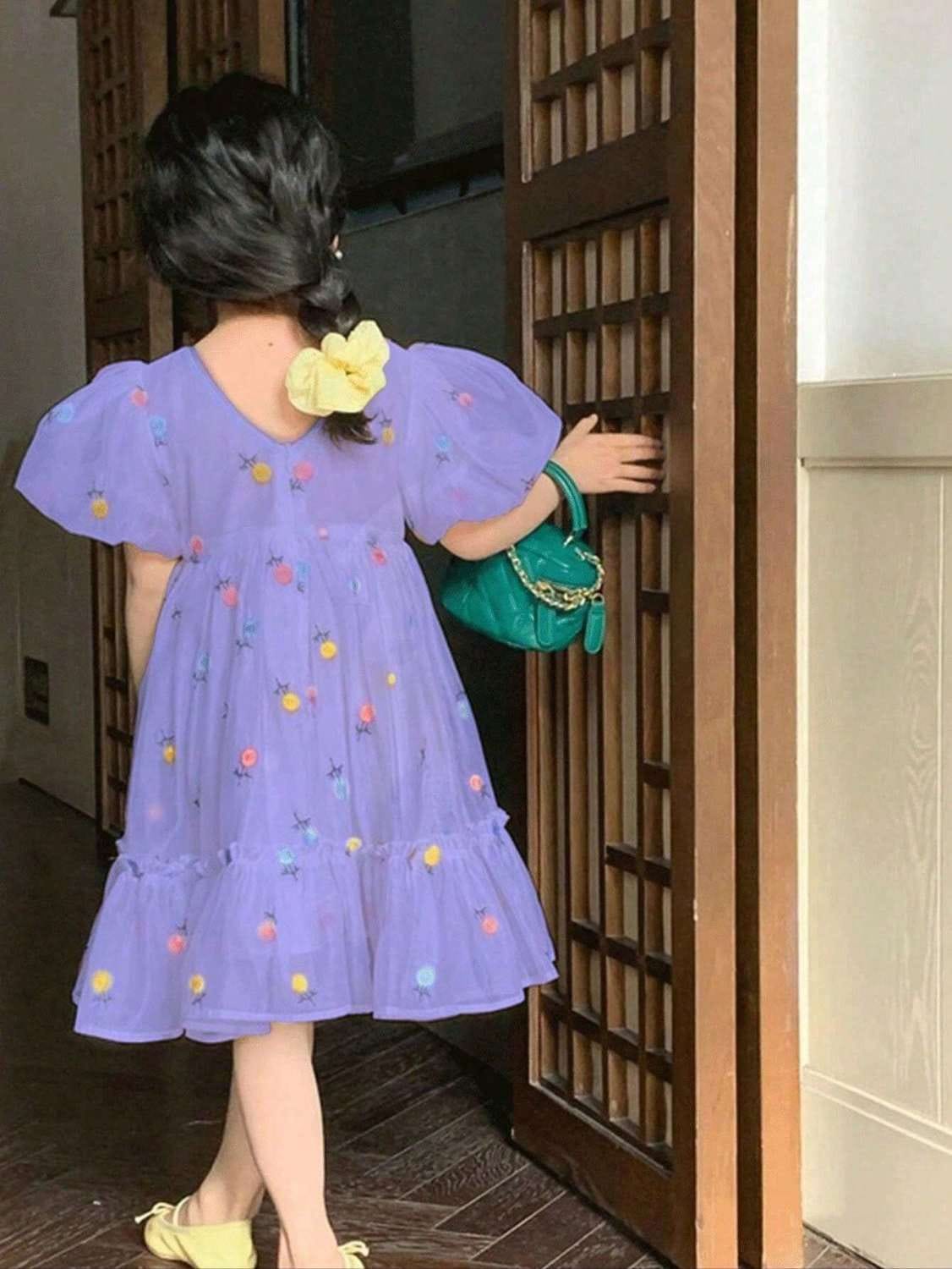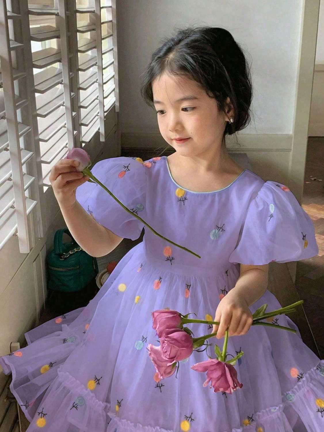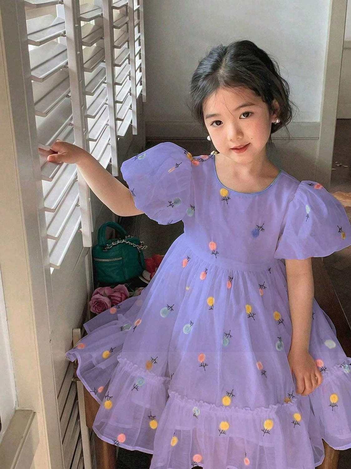 Dreamy, delicate, and oh-so-adorable — the Lavender Blossom Princess Dress is perfect for your little one’s special moments. Made in a soft lavender shade with colorful floral embroidery, this dress features puff sleeves and a tiered, flowy design that gives it a fairytale charm.