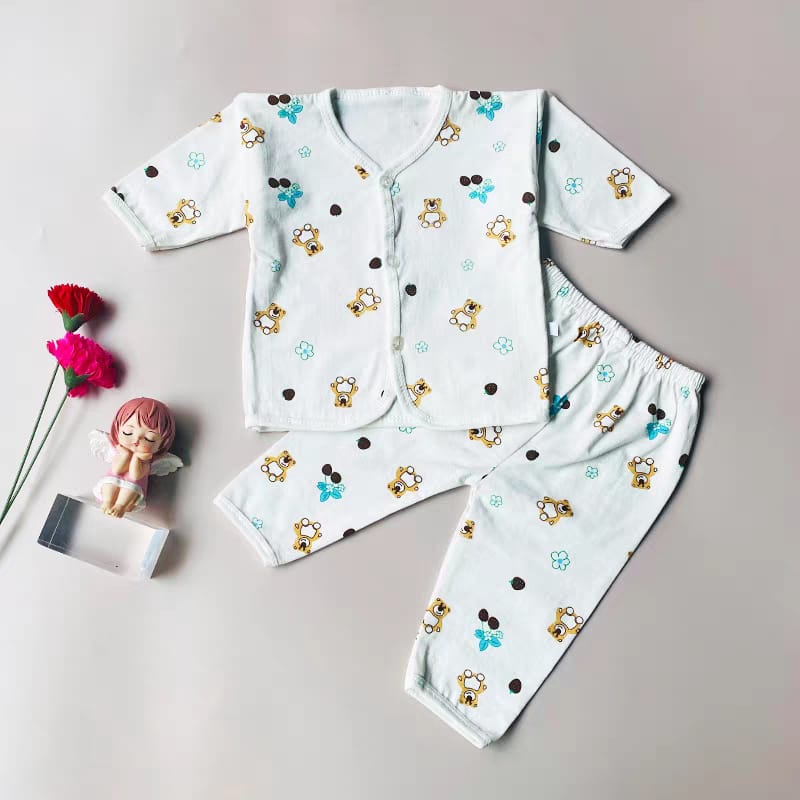 Cute, cozy, and perfect for everyday wear — the Snuggle Bear Newborn Set is designed to keep your baby comfortable while looking absolutely adorable. Made from soft, breathable cotton, this 2-piece set includes a button-up top and matching elastic waist pants. The playful bear and floral print adds a cheerful touch, making it ideal for naps, playtime, or outings.