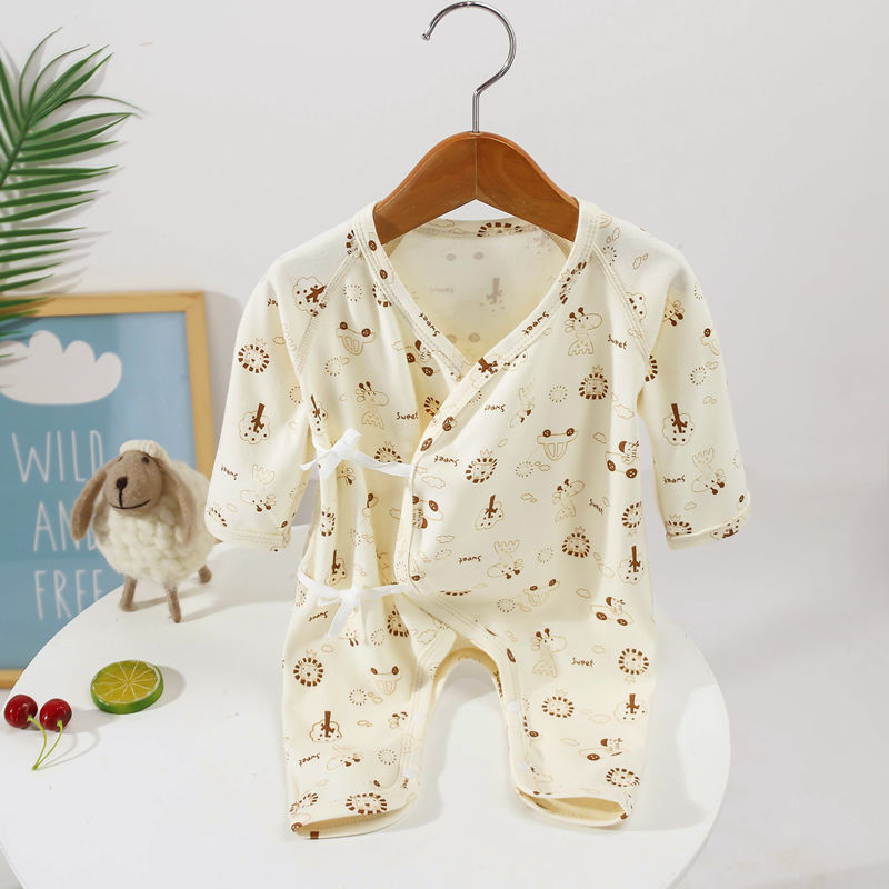 Soft, breathable, and extra gentle — the Sweet Safari Newborn Romper is designed to keep your baby snug and comfortable all day long. Made from lightweight cotton, this romper features a wrap-style front with side ties for easy dressing and quick changes. The playful safari-inspired animal prints in warm neutral tones add a cute and cheerful vibe.